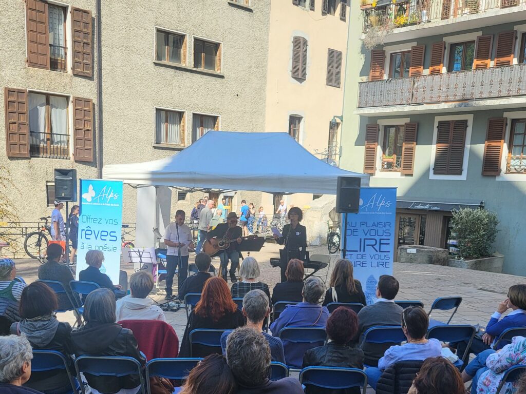 Événement > Place en Poésie c’est une scène dans le centre-ville, dans le Vieil Annecy, des poètes, des musiciens, des textes er des chansons : une heure de poésie en liberté !